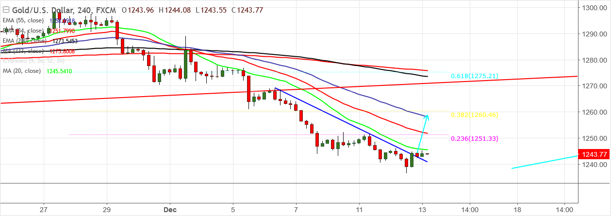 On the higher side, near term resistance is around $1251 (23.6% retracement of $1299 and $1240.26) and any break above will take the yellow metal to next level till $1260/$1269 (200- day EMA ).